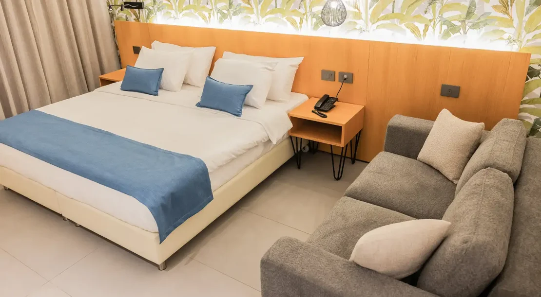 Le Grove Hotel features 38 spacious rooms, each equipped with all the essentials—Wi-Fi, TV and more. A relaxing pool area, and a stylish bar for evening unwinding. Whether you’re visiting solo, with a partner, or your family, we’ve got the perfect spot for you.